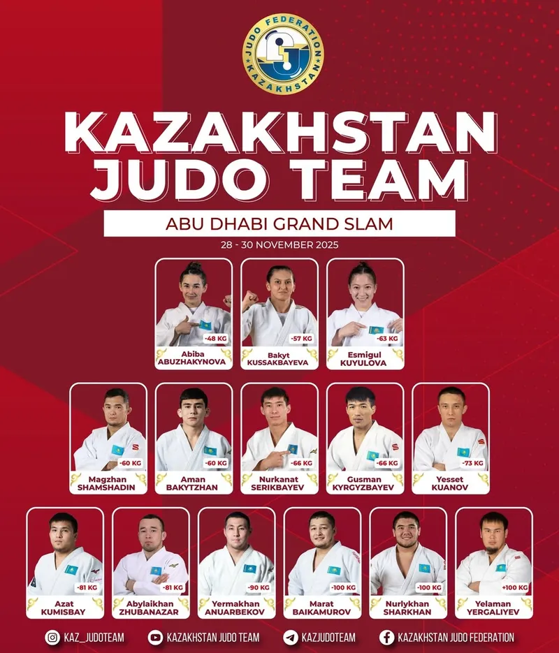 Компанию ей составят другие звездные дзюдоисты Казахстана. Полный состав сборной Казахстана представлен следующим образом.