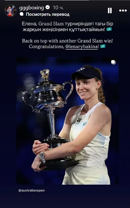Головкин обратился к Рыбакиной по случаю победы на Australian Open