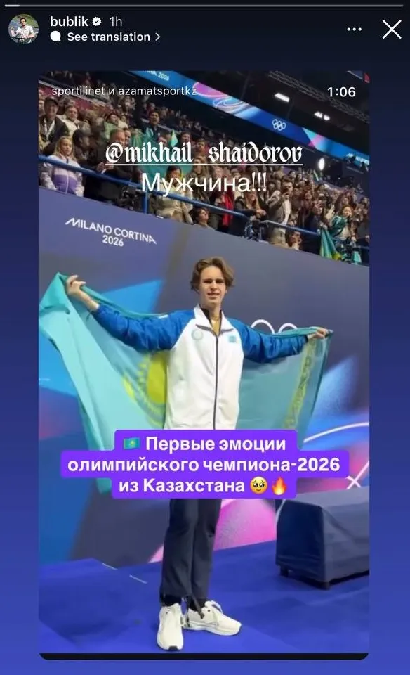 Буквально за час до победы Бублика, Казахстан завоевал первое "золото" Олимпийских игр в Милане.