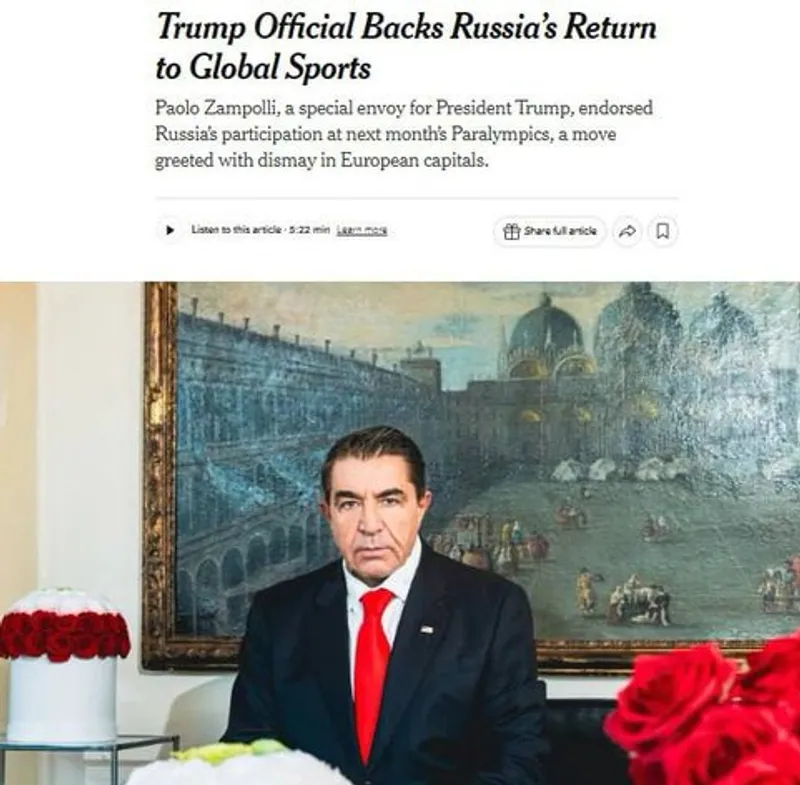 На следующий день спецпосланник президента США по глобальному партнерству Паоло Замполли публично поддержал участие россиян в Паралимпиаде с флагом и гимном, передает The New York Times.