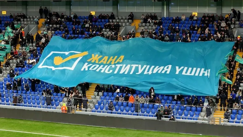 Масштабную патриотическую акцию в поддержку конституционных реформ провели во время футбольного матча в Астане