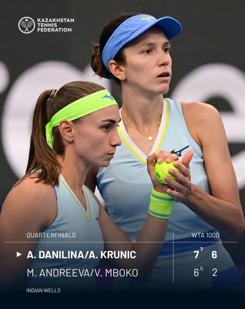 Таким образом казахстанка Анна Данилина и Александра Крунич из Сербии вышли в полуфинал турнира WTA-1000 в Индиан-Уэллсе, где встретятся с Кристиной Букшей из Испания и американкой Николь Меликар-Мартинес.