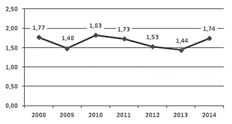 Показатель энергоемкости ВВП определяется как отношение объема валового потребления топливно-энергетических ресурсов на все производственные и непроизводственные нужды в тоннах нефтяного эквивалента к величине ВВП. В соответствии с данными Комитета по статистике МНЭ РК энергоемкость ВВП за 2014 год составляет 1,742 тнэ на 1 000 долларов, То есть снижение энергоемкости ВВП составляет всего 2% от уровня 2008 года, в сравнении с 2013 годом увеличилось на 20,6%.