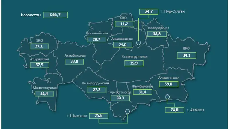Наибольший рост численности занятых в сфере отмечен в Восточно-Казахстанской области (на 25,3%, до 34,1 тыс. человек), наибольшее сокращение — в Карагандинской области (на 7,6%, до 35,9 тыс. человек).