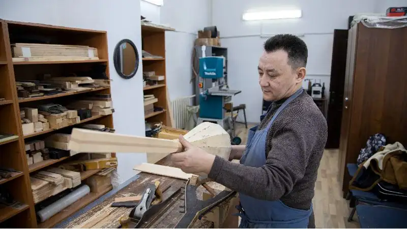 – Чтобы сделать хорошую домбру, нужно не менее 20 дней. Подготовка древесины и получение звука занимает много времени. А если принять во внимание еще и сушку древесины, то на изготовление домбры уходит 4-5 лет. Значительная часть работы зависит от времени высыхания инструментальной древесины. Что касается музыкальных инструментов, то древесина должна сохнуть в тени в течение 4-5 лет при умеренной температуре. А также она должна постоять некоторое время после высыхания.