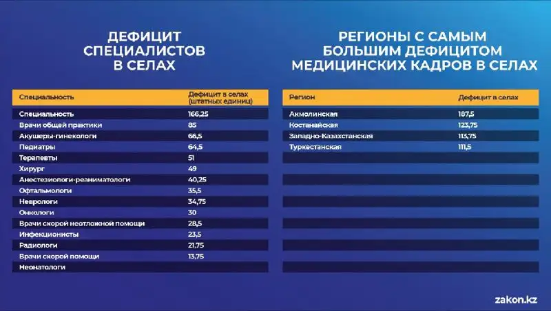 В ответе на запрос Zakon.kz директор Департамента науки и человеческих ресурсов Министерства здравоохранения Даурен Алдынгуров сообщил, что актуальными причинами отказа работать на селе являются, прежде всего, отсутствие инфраструктуры и частично уровень заработной платы.