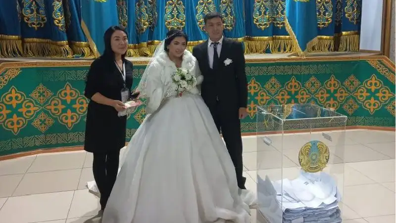 "Сегодня важный день для нас, так как в этот день мы стали семьей. Также этот день совпал с историческим событием для всей нашей страны – выборами президента. Мы решили исполнить свой гражданский долг и сделать выбор, который повлияет на будущее нашей страны", – сказала невеста Аяжан Заданова.