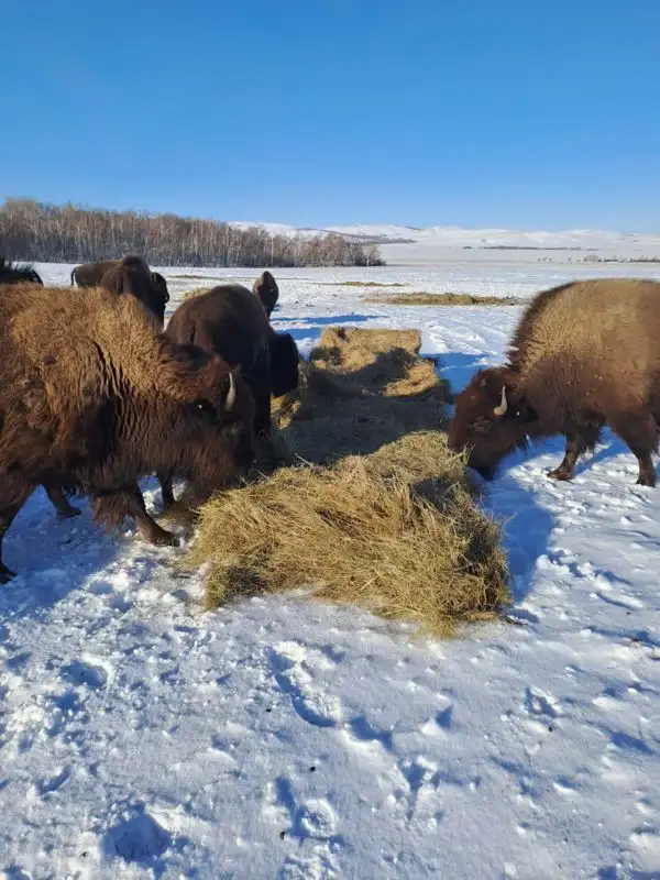 Сейчас новыми звездами парка стали бизоны. В 2020 году в заповедник завезли 10 бизонов, а в этом году они дали первый приплод. Молодые бизонята вызывают восторг у детей. С ними также можно пообщаться вблизи. Смотрители раскладывают сено прямо на снегу. Пока бизоны едят, на них можно посмотреть.