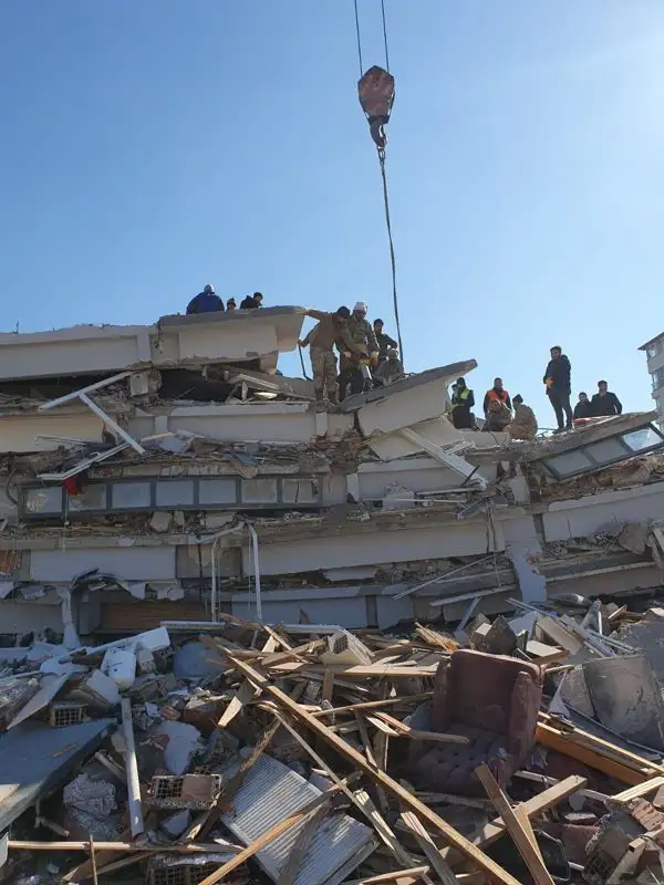 "Прилетели в Газиантеп 9 февраля, всех прикомандировали к РОСО. Владимир Константинович Цой (руководитель РОСО) на месте распределял по участкам, нам достался 7-этажный дом. Хотя домом его трудно было назвать – по несущей стене он раскололся пополам. Рядом стоял дом с обрушившимися балконами, передние опорные балки могли рухнуть в любую минуту. Но по сводке в этом строении не было людей, и его снесли на следующий день. А в доме, который нам достался, находились 25 человек, в том числе шестеро детей". Роман Шевченко