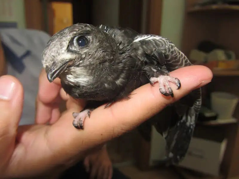 - Чтобы понять подобрали вы птенца или взрослого стрижа, достаточно посмотреть на его окрас. У птенцов он светлее: концы перьев имеют белую окантовку, которая сохраняется примерно до года.