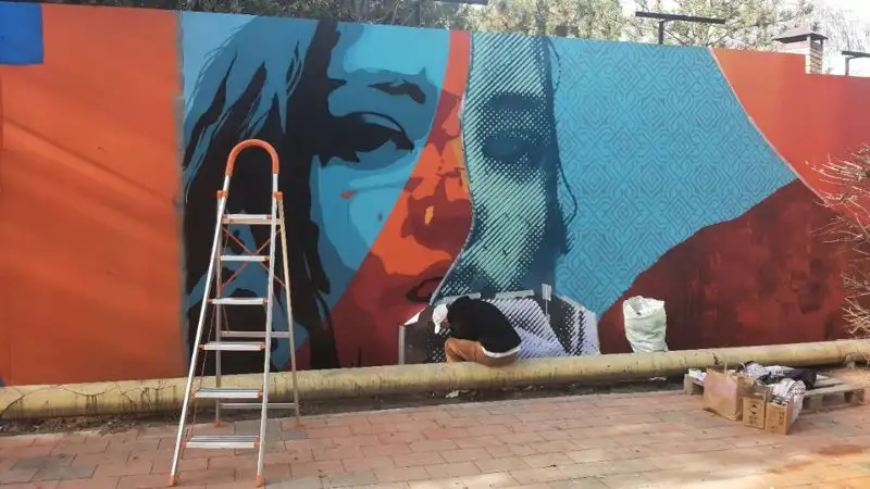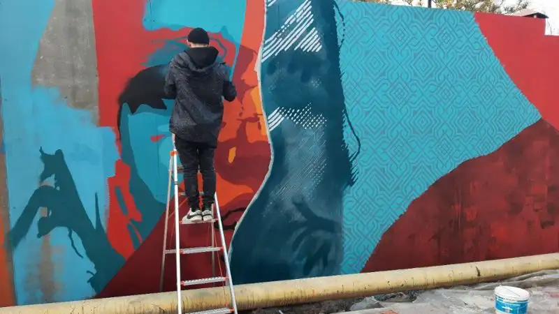 Свою масштабную работу по "расписыванию стен" художники-граффитисты начали в первые выходные ноября. По задумке проект должен олицетворять буквы казахского алфавита. Все 42 буквы будут "вмонтированы" в общую сюжетную композицию и ярко раскрашены красками в баллончиках на бетонных холстах.