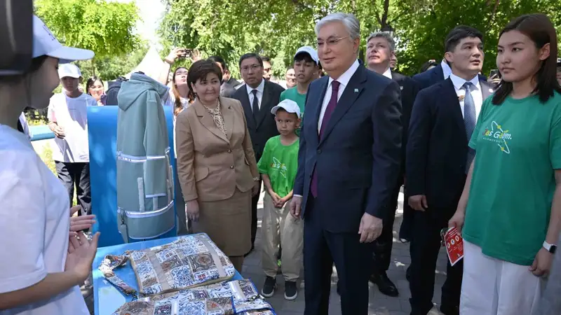Традиционный ежегодный фестиваль в этом году посвящен теме науки. Токаев вместе со школьниками осмотрел станции Science, Engeneering, Art, Technology, Mathematics. Здесь учащиеся в формате квеста представили свои научные проекты.
