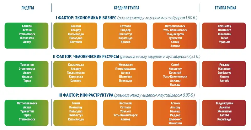 Выводы и рекомендации составителей рейтинга таковы. Экономическое развитие в городах Казахстана в основном сосредоточено в городах республиканского значения, а также в промышленных моногородах.