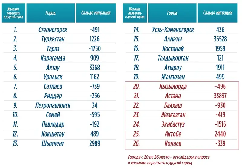 Сравнение опроса граждан о желании переехать и сальдо миграции. Иллюстрация: economy.kz
