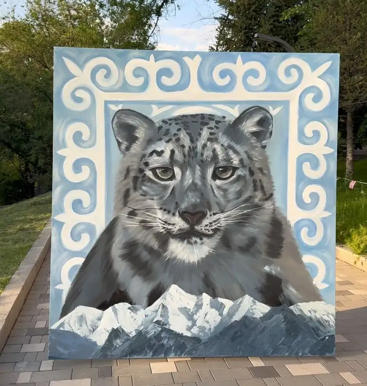 По словам алматинки, в своих работах она оживляет культурное наследие, приносит его в современный мир и всегда хочет передать красоту казахстанской природы с переплетением национальных элементов. Отметим, что изображенный выше снежный барс на фоне гор и окруженный национальными орнаментами – одна из отмеченных работ художницы.