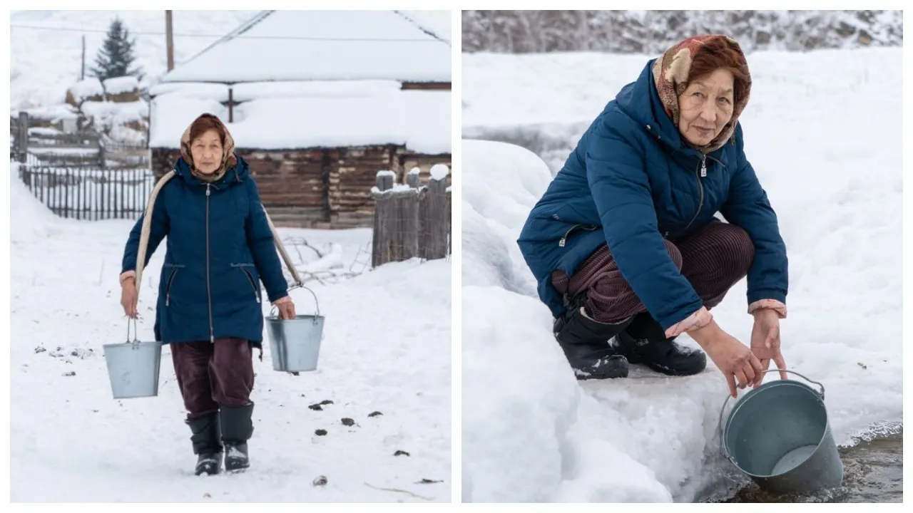 Ернар Алмабек и Гульнара апай вместе отправились к реке Беркут, чтобы набрать воду. В пути пенсионерка рассказала, что ни в одном из домов нет колонки. Единственный чистый источник проведен возле школы, однако, чтобы добраться до него, ей потребуется час и столько же на обратную дорогу.