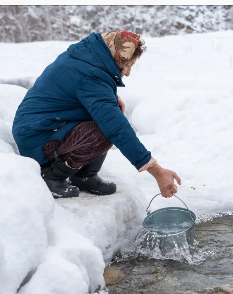 "С утра таскать воду тоже хорошее дело. Чистая вода или нет – а кто ее проверял? С благодарностью принимаем дары природы. Всю жизнь так живем… У колонки, что возле школы, всегда большая очередь, да и дорога дальняя, сложно осилить с тележкой и флягой. Поэтому куда ближе, туда и идем. В этом году как таковой опасности нет. Прошлой зимой, когда был снегопад и лютый мороз, образовался очень толстый лед. Было страшно поскользнуться прямо в реку", – говорит Гульнара апай.