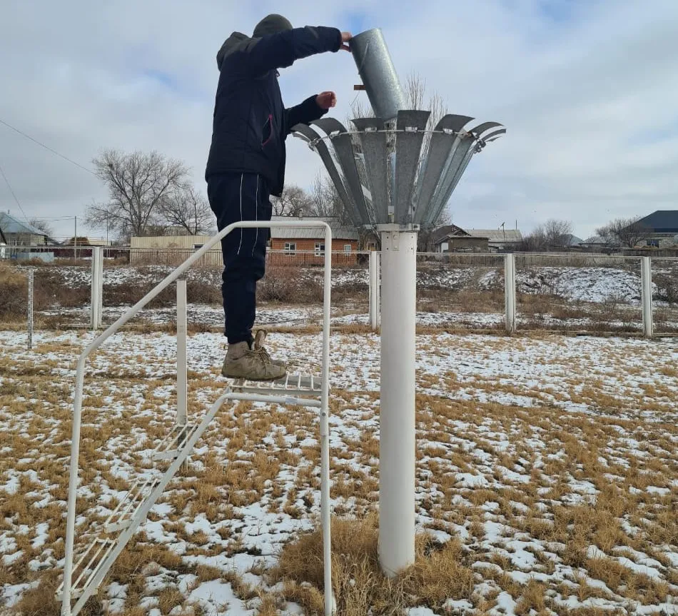 "Сейчас погода снежная, нужно расставлять снегомерные рейки, чтобы узнать высоту снега. Есть термометры для измерения температуры почвы на разной глубине, а есть напочвенные термометры – это большие градусники, они лежат прямо на земле. Необычный прибор в виде огромного цветка – это осадкомер Третьякова, с его помощью измеряют атмосферные жидкие и твердые осадки. Это снег, град, дождь, роса, иней, изморозь. Они попадают в специальное цилиндрическое ведро, и дважды в сутки сменное ведро с осадками сливают в специальный измерительный стакан", – рассказывает Сауле Оспанова.