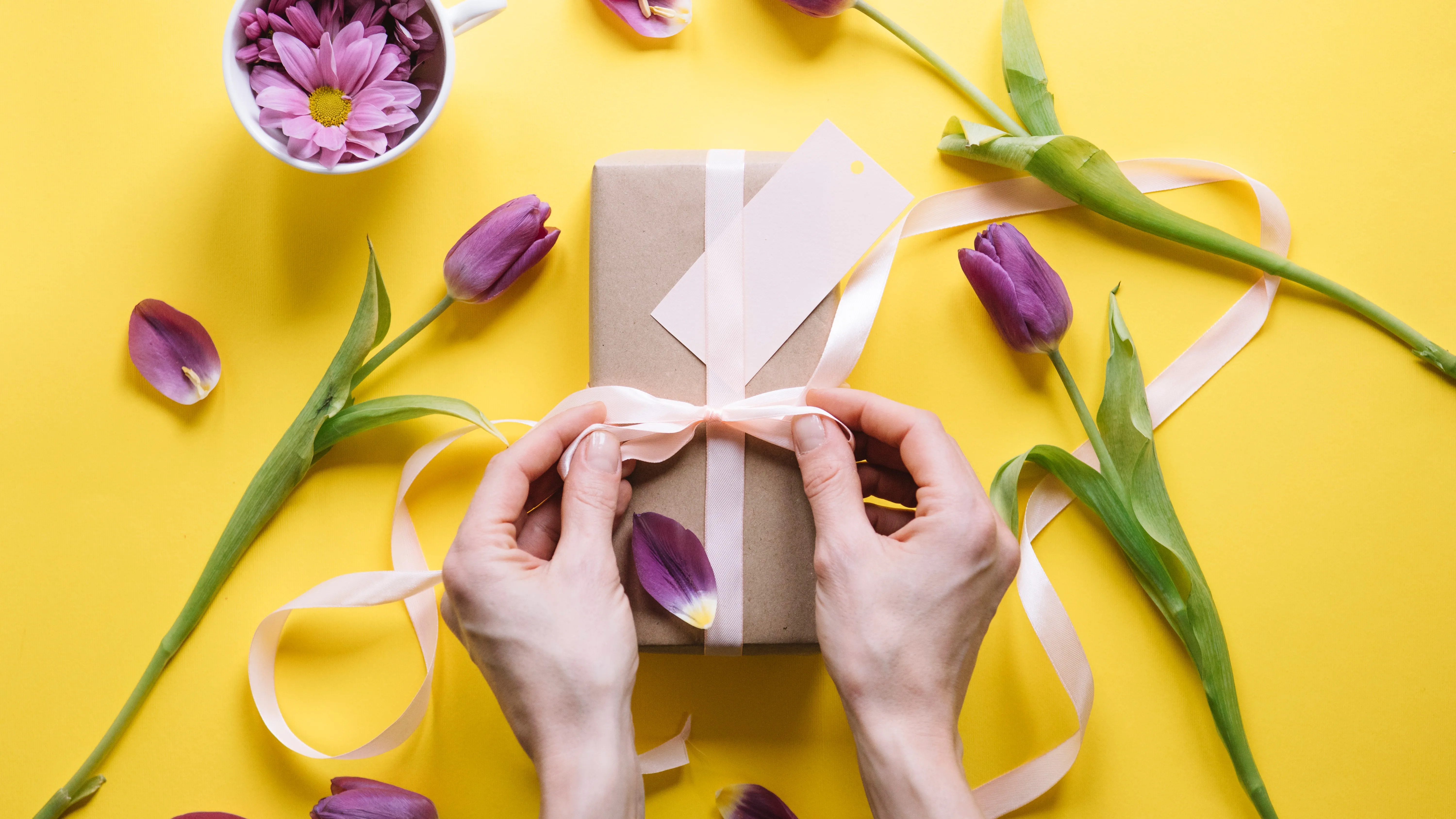 Традиционный презент к 8 Марта – цветы. Композиция из свежих тюльпанов – своеобразный символ этого праздника.