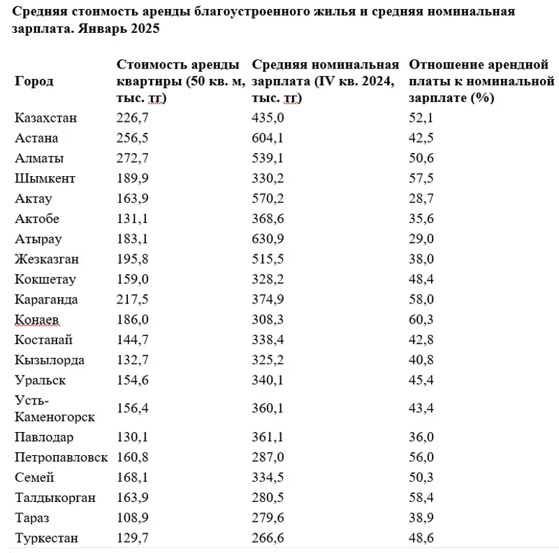 Наиболее благоприятная ситуация наблюдается в западных регионах страны, таких как Атырау, Актау и Актобе, где доля арендной платы в доходах ниже. В этих городах можно найти доступное жилье и при этом иметь достаточно средств на другие расходы.