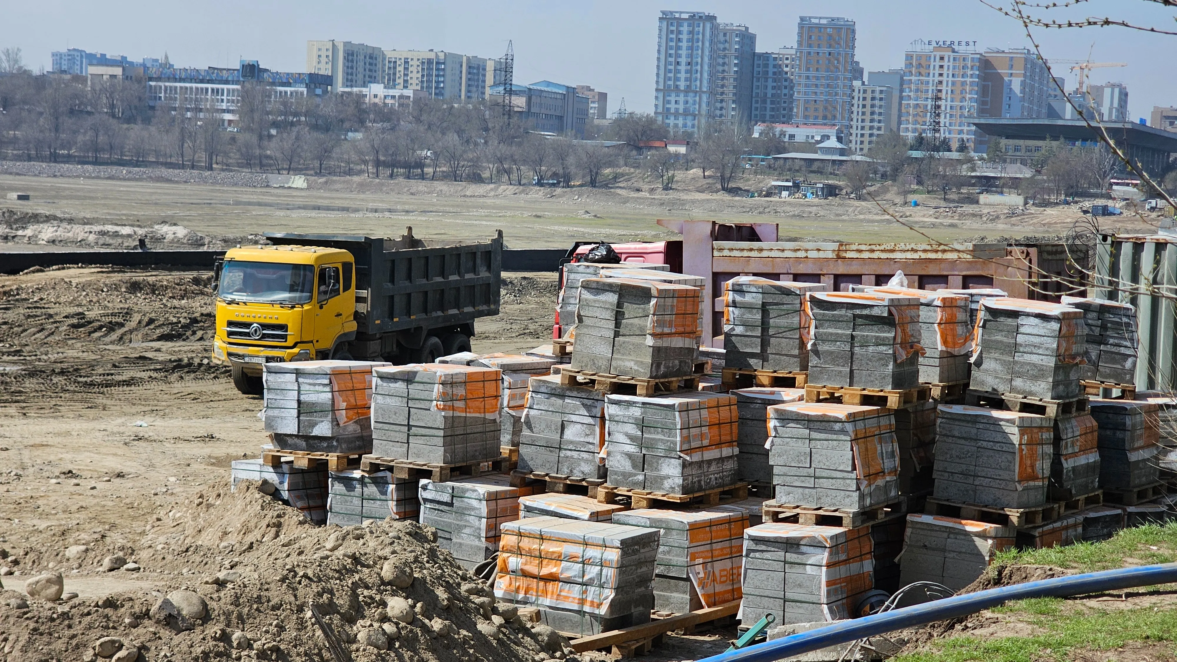 Если сравнивать с прошлым визитом, разница, конечно, колоссальная: площадку вычистили и выровняли, гостей встречает вымощенная брусчаткой дорожка и аккуратные свежевысаженные деревца, кое-где уже виднеются робкие очертания будущего места притяжения алматинцев.