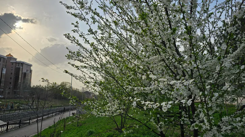 Согревшись в лучах медового солнца и насквозь пропитавшись его сладостью, в Алматы зацвели вишневые деревья. Аромат стоит такой, что кружится голова. Насекомые, наверное, и вовсе пьянеют от него еще на подлете к нежным лепесточкам...