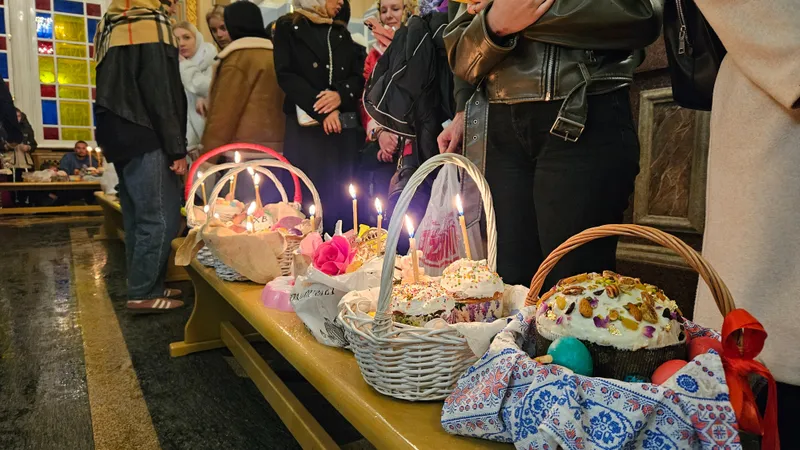 Под звон колоколов и общую молитву собравшиеся поздравляют друг друга с окончанием Великого поста и началом Пасхи.