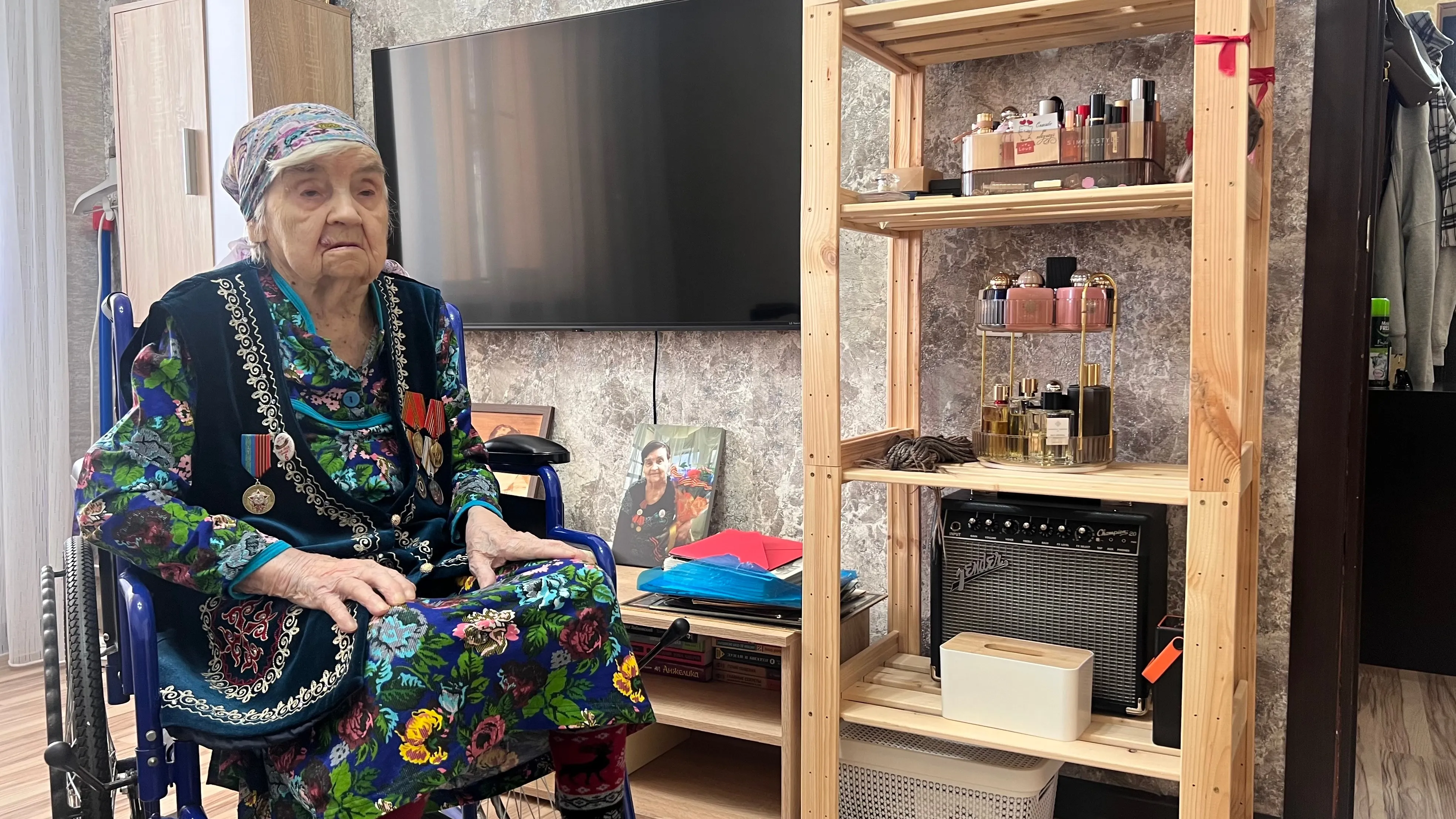 "Мама никогда не унывала, какой бы ситуация ни была, она всегда находила выход. Жизнь ее потрепала, но она не озлобилась. Ни с кем не конфликтовала, была жизнерадостной. До 90 лет хорошо пела, всегда с радостью делилась своими воспоминаниями, кто бы ни приходил. Если бы не болезнь…", – говорит дочь, поправляя матери платок на голове.