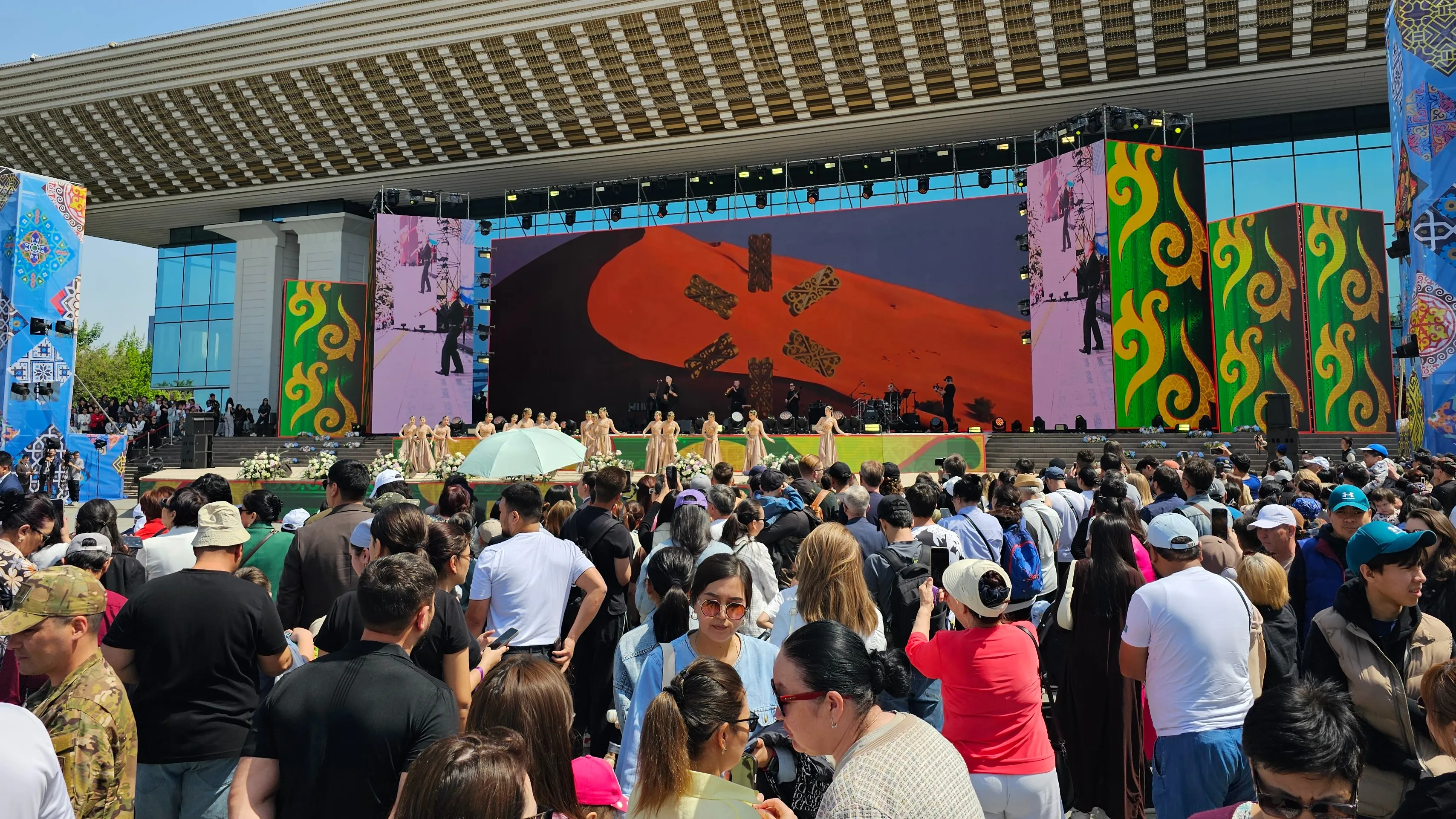 С утра на главной сцене перед алматинцами выступают казахстанские артисты и творческие коллективы, представляющие этническое и культурное многообразие страны.