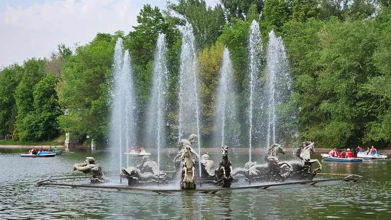 Красив и статен фонтан "Нептун" на территории Центрального парка отдыха. Его бьющие струи из воды очень величественны, а исполнение сооружения в виде античных скульптур весьма живописно.