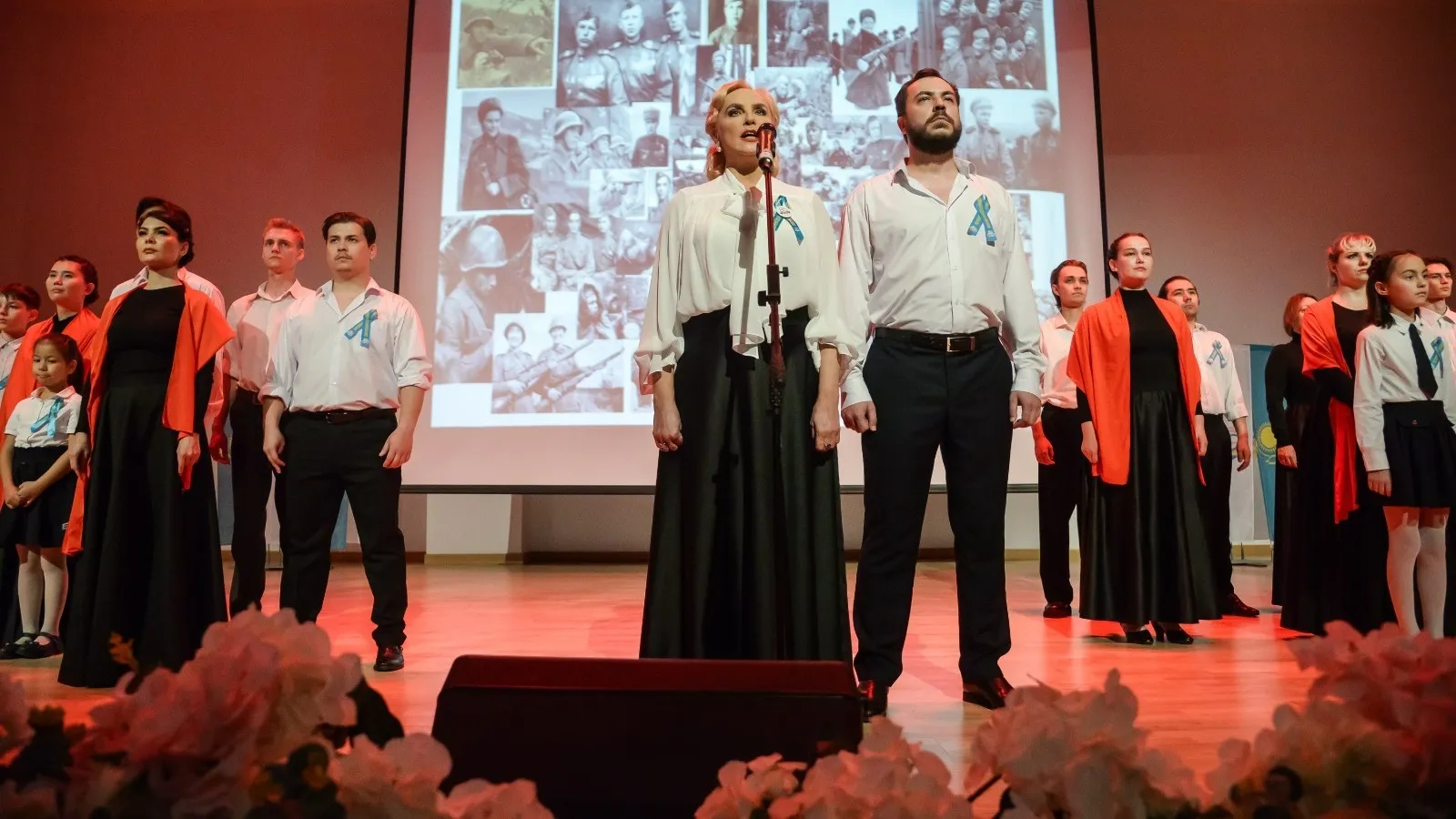 На сцене показали музыкально-поэтический спектакль "Знамя Победы". Это особая программа, наполненная живыми голосами истории, где сплелись фронтовые письма, стихи о войне, песни Победы, воспоминания о тех, кто не вернулся с полей сражений, и хроника тех суровых лет. Каждый номер стал данью памяти, признания и любви к героям, отстоявшим свободу Родины ценой лишений, голода и потерь.