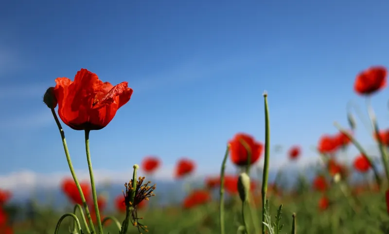В этот ласковый период на полях и степях пылают алые моря из цветущих маков.