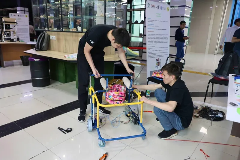 - Команда "CyberBricks" из Шымкента разработала интерактивные ходунки для реабилитации ребенка с ДЦП, оснащенные датчиками и микроконтроллером, интегрированным с игровой системой.