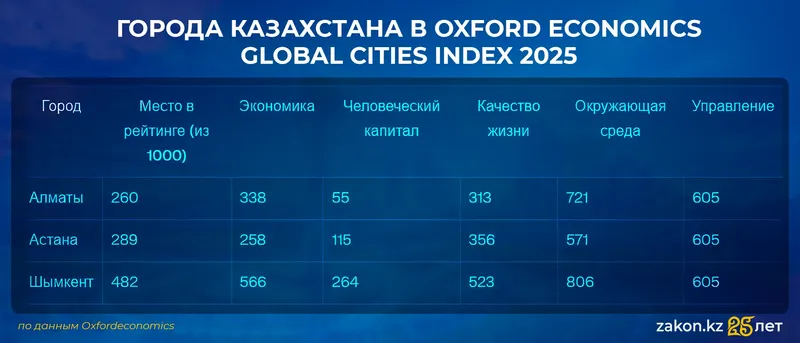 В рейтинге 2025 года казахстанские города показали следующие результаты, которые по праву можно назвать прорывными: