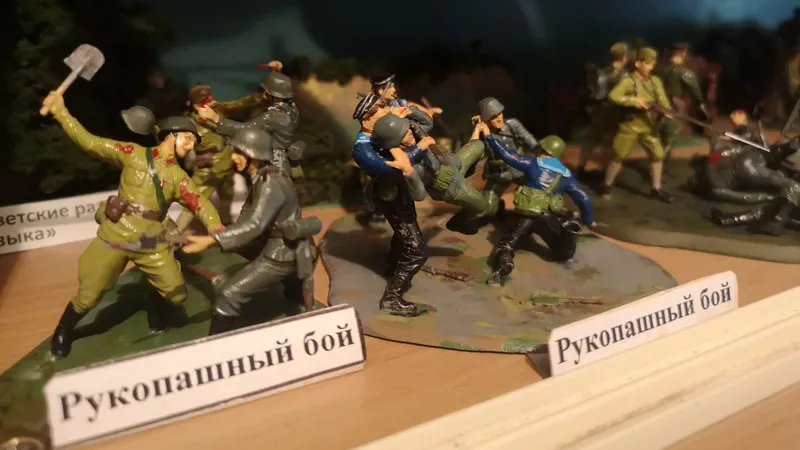 У павлодарца есть историческая справка о каждой модели. Будь то самолет, танк, стрелковое орудие или сцена времен ВОВ. Вот солдаты Красной армии ведут рукопашный бой с противником, артиллеристский расчет готов выпустить снаряд.