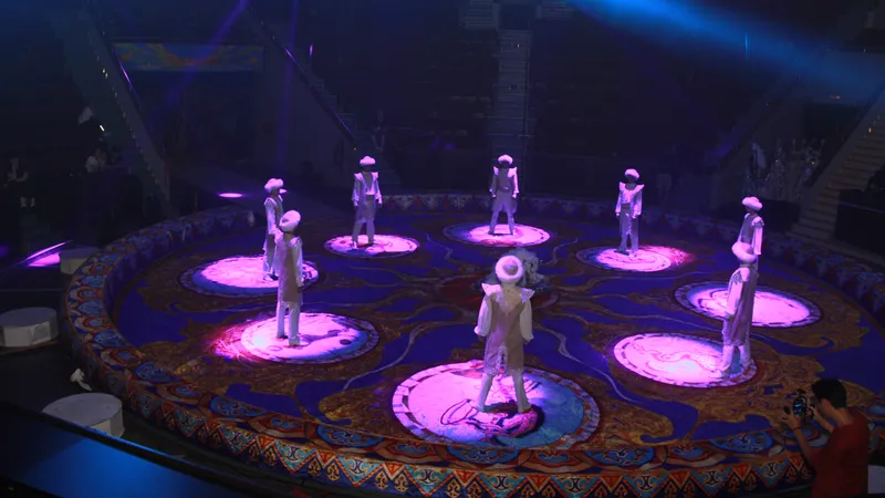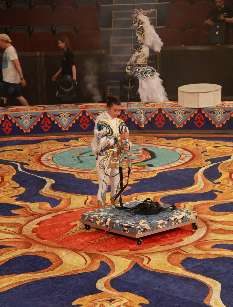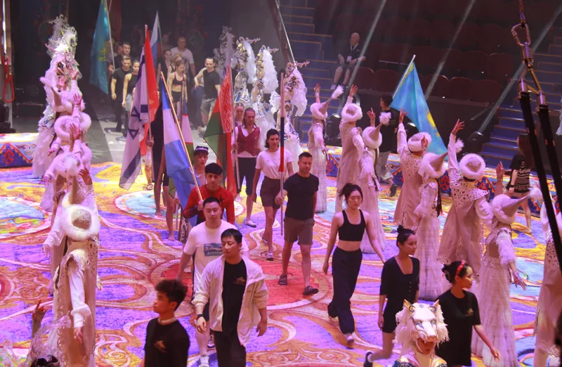 На арене Казахского государственного цирка подготовка к фестивалю в самом разгаре. В воздухе чувствуются легкое напряжение и волнение. Артисты предвкушают, что уже совсем скоро начнется настоящий праздник циркового искусства.