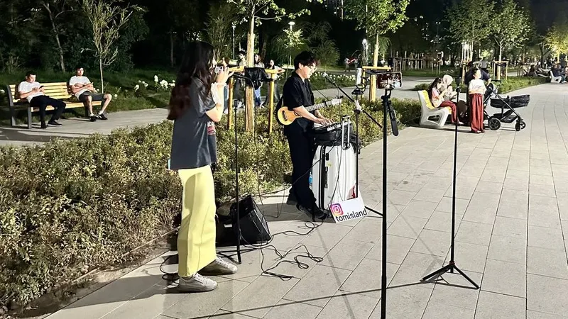 Особую атмосферу теперь на озере Сайран создают и уличные музыканты. Молодые люди исполняют как современные хиты, так и композиции из классики казахстанской эстрады. К примеру, можно часто услышать песни из репертуара Розы Рымбаевой, Батырхана Шукенова и группы "Овощи и фрукты".