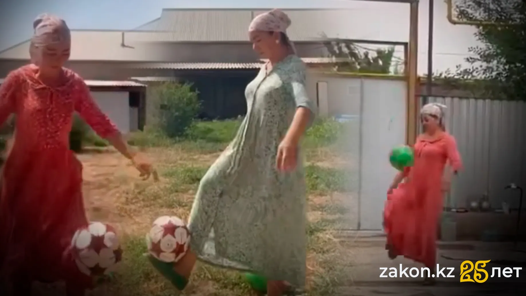 Казахстанская "Мамальдиньо": домохозяйка в халате и калошах покоряет футбольным мастерством