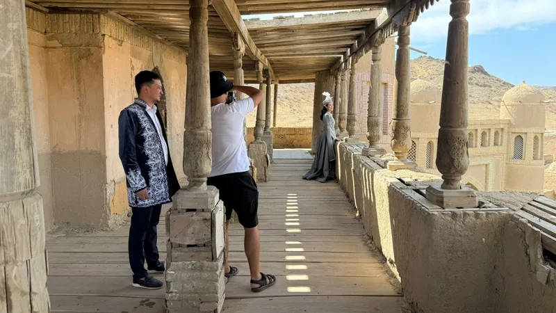 На террасе фотосессию в национальном стиле устроили влюбленные Муратжан и Зарина из Алматы. Они признались, что в восторге от видов, которые передают дух и атмосферу древности. Панорама позволяет насладиться красотами реки Или и гор. Декорации с тонкими деталями впечатляют взрослых и детей – это настоящая крепость с огромными воротами, куполами и башнями.