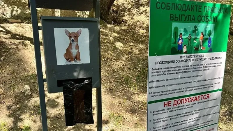 Проектировщики учли и то, что по терренкуру люди часто гуляют со своими домашними питомцами. В парке расположено несколько мест, где можно взять целлофановый пакет для уборки за четвероногим. Здесь же разместили и правила выгула собак.