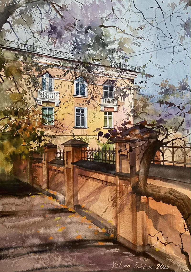 "Алматы – мой родной город. Старая архитектура возвращает меня в детство. Я прогуливаюсь по городу, фотографирую интересные здания, возвращаюсь домой и на одном дыхании переношу увиденное на холст. Сначала это были красивые балкончики, потом обшарпанные стены. Допустим, в районе Никольского рынка были перекосившиеся двухэтажные домики с потертой штукатуркой. Я написала их и назвала "Портрет дома", потому что эти окна и балконы как живые глаза, следящие за происходящим. На днях проходила мимо них и увидела, что строение отремонтировали. Да, красиво, чисто и все замечательно, но интерес уже не вызывает. Так и с современной архитектурой, она не вдохновляет живописцев. Люблю писать тени, поэтому, когда солнце освещает, выискиваю и ловлю моменты. В основном пишу по своим фотографиям в своей студии. А на пленэре очень сложно, потому что бумага сохнет. Дома все-таки можно феном подсушить, или напротив, подмочить".Елена Иоктон