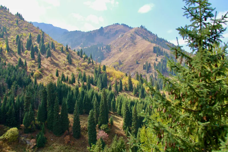 Алматинские горы переливаются всеми оттенками осени от медового золота до глубокого янтаря, от огненно-красного до изумрудно-зеленого. Каждое дерево будто надело свое самое яркое платье, готовясь к осеннему балу. Цвета радуют глаз, греют душу, вдохновляют на покорение новых вершин, и кажется, что, если долго смотреть на этот осенний калейдоскоп, можно на время забыть обо всем, кроме того, как тут хорошо.
