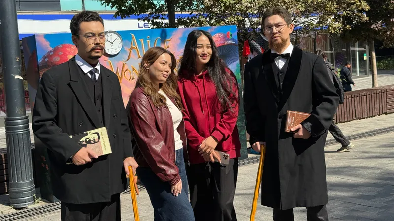 Атмосферу усиливают живые образы, по Арбату гуляют актеры в образах классиков казахской литературы. Будто страницы книг соскочили с переплетов и пошли гулять.
