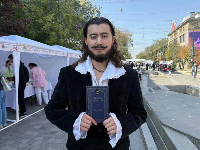 "Я пришел сюда, потому что мне очень близка поэзия Серебряного века. На фестивале я впервые и решил прийти в образе Шекспира. Мне кажется, я на него немного похож. Атмосфера здесь потрясающая: столько книг, интересных людей и настоящая любовь к чтению в воздухе. Это вдохновляет", – рассказывает Раимбек.