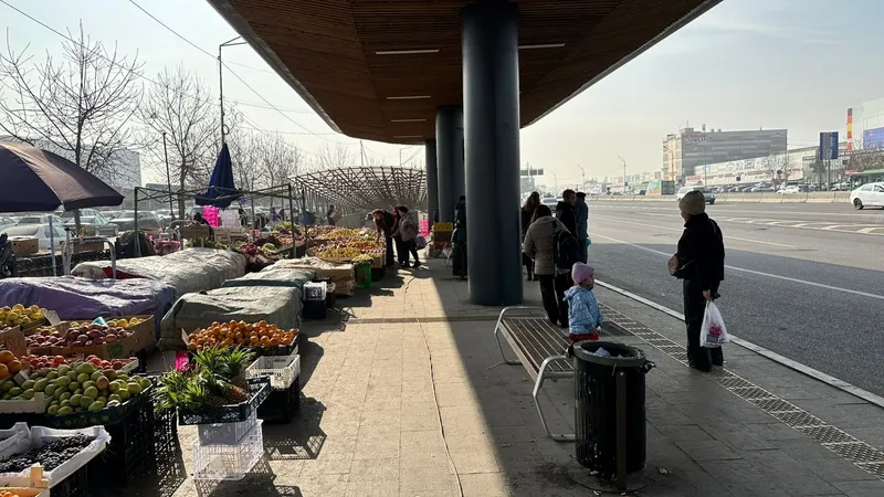 "Аренда на территории рынка дорогая. Заплатить ее надо сразу, вне зависимости от того, на сколько ты наторгуешь. При этом не всегда можно найти свободное торговое место. Поэтому и приходится идти под крышу этой остановки. Тут удобно торговать. Большая проходимость. Да и людям удобно, далеко не надо идти за продуктами: вышел из автобуса, купил фрукты-овощи и обратно зашел в автобус ", – рассказала продавец Гульмира.