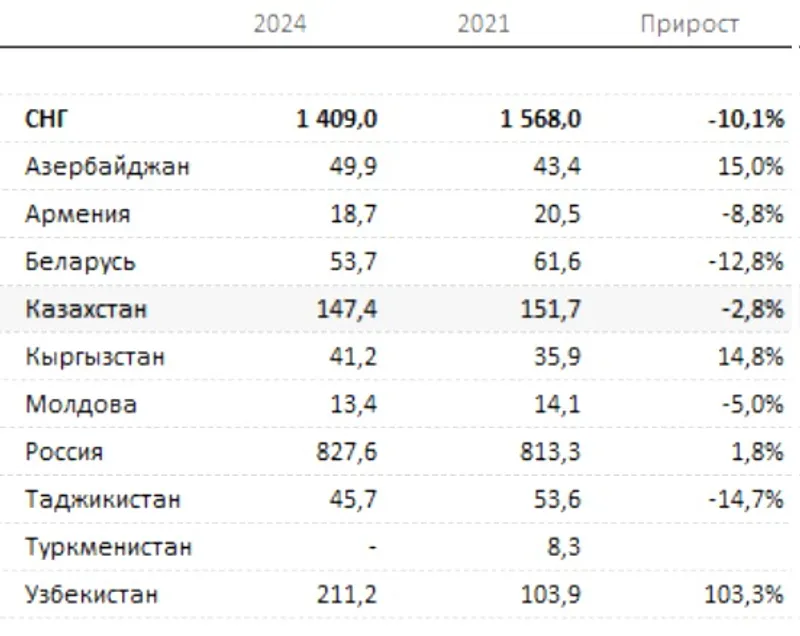 Что касается выпуска из колледжей и профессиональных лицеев, их общая численность в СНГ с 2021 года выросла на 11,3%, приблизившись в 2024-м к 1,1 млн человек. Почти 70% пришлось на Россию: 688 тыс. человек. Казахстан занял второе место: численность выпустившихся из учреждений среднего профессионального образования составила 158,7 тыс. человек.