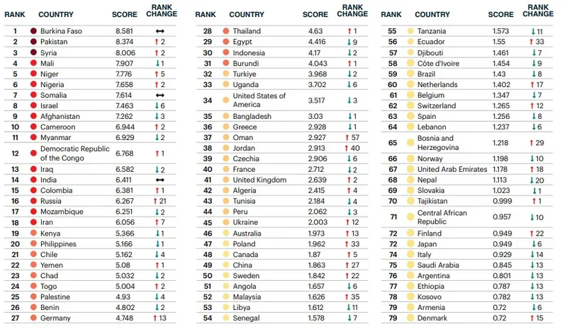 - Регион Сахель (Западная Африка) остается основным очагом террористической активности, где приходится более половины всех смертей от терроризма в мире.