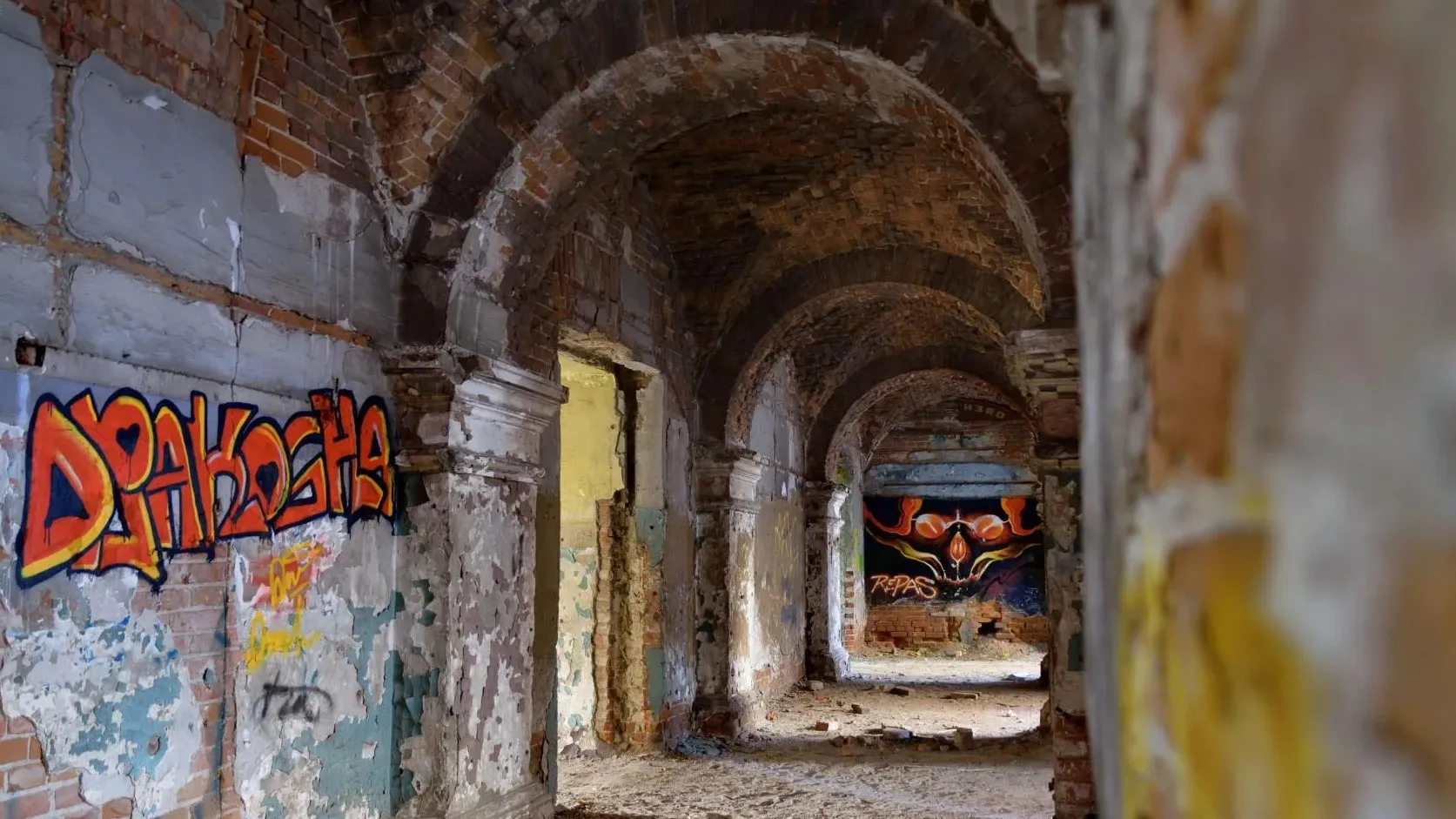 Старинные кирпичи еще хранят на себе клейма – печати далеких времен, есть на перегородках и заборах и более современные автографы: постарались стрит-арт художники. Да и местная молодежь не отказывает себе в удовольствии оставить память о пребывании при помощи баллончиков с краской.