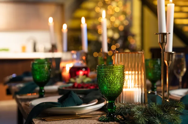 Добавьте золотистые детали – подсвечники, элементы сервировки, легкие теплые оттенки в декоре, золотые свечи или золотые подставки под тарелки, желтые или золотистые салфетки или бокалы.