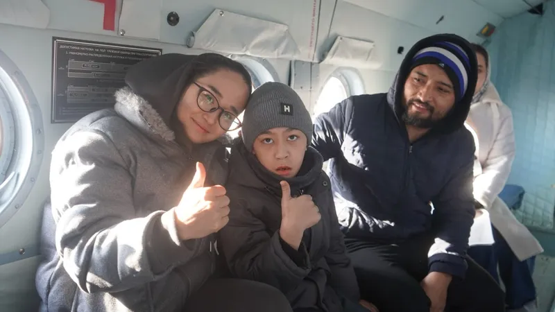 Кульминацией дня стал долгожданный полет на вертолете Ми-8 над небом Алматинской области – момент, который навсегда останется в памяти мальчика и его семьи.